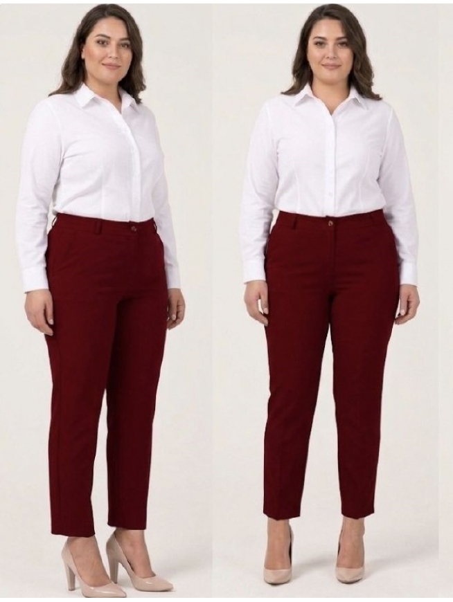 Battal Beden Beli Kemerli Cepli Klasik Kumaş Pantolon (BORDO)